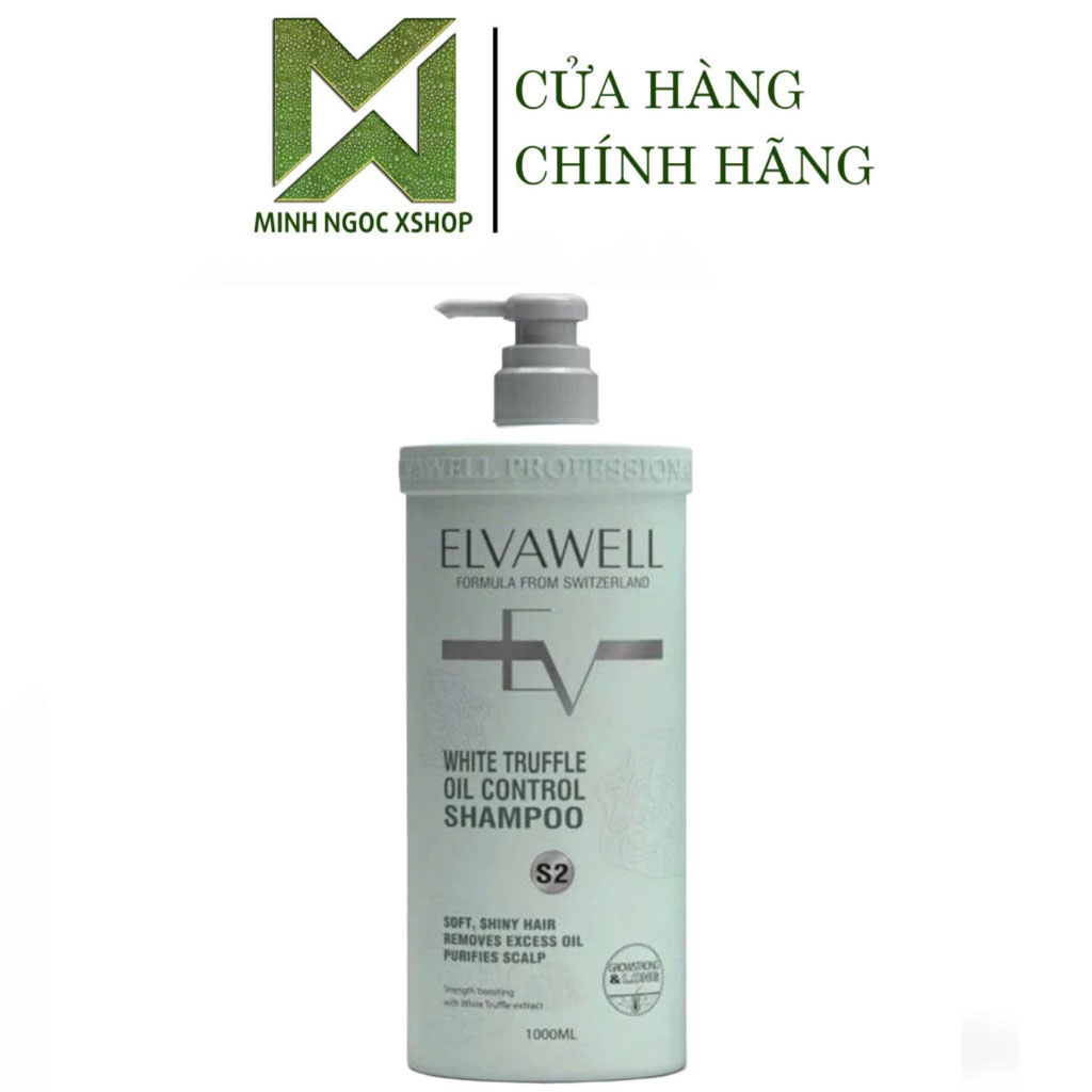 Dầu Gội Giảm Rụng Tóc Sạch Dầu Bết ELVAWELL White Truffle Oil Control Shampoo S2 1000ML, Màu Xanh