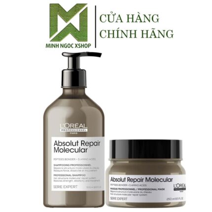 Combo Dầu gội và Dầu hấp phục hồi Peptides cho tóc hư tổn L’Oréal – Loreal Absolut Repair Molecular 500ML + 250ML